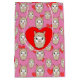 Cute tecknad Lama i rött hjärta. Anpassningsbar rosa presentsäckar. Llamas och röda hjärtan i bakgrunden. Skitsnack för kvinnor och flickor som kärlek-lamas!