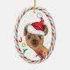 På framsidan av denna söta julprydnad bär ett litet brunt baby-lampa en röd och vit julhatt och en röd båge. På ena sidan står den färgstarka texten "JOY". Ett rött och grönt godis i rand gräns avslutar designen. Baksidan av dekorationen har samma gräns och fyra texter fält i rött och grönt som du kan anpassa.