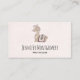 Affärskort med en teckning av en söt liten lampa med krona och en peruansk filt. Tittar finare och elegant.