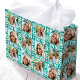 This cute "Love You" gift bag can be personalized with four of your favorite photos. It features a photo collage in a square-shaped grid, with modern typography and simple love hearts. Perfect for Valentine's Day, birthdays, wedding anniversary, Mother's Day, and other special occasions. This trendy design adds a unique touch and is a lovely choice for a daughter, girlfriend, boyfriend, husband, wife or best friend. An allover pattern gift bag with your choice of a matte or glossy finish. Template colors: blue-green, teal, light pink and white — or customize the background color with the design tool.