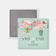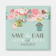 Tydliga illustrationer av två vilda fåglar på ett viskartat gren med olika blommor. Spara datum magneter är perfekt för en sommar eller vår bröllop.