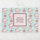 Vin flaska med ett bra mönster med en vattenfärgstryck. En luftballong dekorerade med söt rött och rosa blommor. En söt liten vit björn i baby ligger i basket. Ljusblå bakgrund. En rosa-ruta läggs ovanpå med händelsetexten inuti.