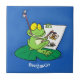 Cute lustig grönt groda tecknad illustration kakelplatta