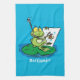 Cute lustig grönt groda tecknad illustration kökshandduk