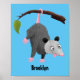 Cute lustig opossum hängande från gren tecknad poster