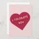 Cute, lustigt "Jag tolererar dig" Alla hjärtans da Julkort
