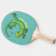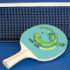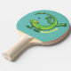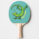 Cute lycklig grönt gecko hälsning med kryp tecknad pingisracket