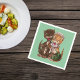Den pappra napkin har två söta lycklig-katter, en man, en hona som delar råttor från gultens grönt basket på en djup mint grönt.