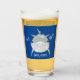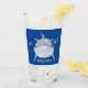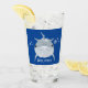 Delfinen i lycklig flaska blåser bubblor! Ritad i en söt illustration av tecknaden stil på en blå bakgrund.