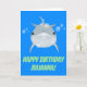 Delfinen i lycklig flaska blåser bubblor! Ritad i en söt illustration av tecknaden stil på en blå bakgrund.
