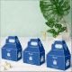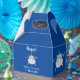 Delfinen i lycklig flaska blåser bubblor! Ritad i en söt illustration av tecknaden stil på en blå bakgrund.