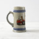Den här roliga bruna kon kör en röd traktor. Mycket roligtar för lantbrukaren eller kon älskare!