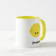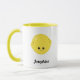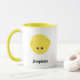 Cute och snyggt mugg med ett snyggt kawaii-leende citron och en redigerbar textplatshållare för ditt namn eller din anpassningsbar i ett modernt, fetstilt skript. Anpassa den här designen så att den passar stil genom att klicka på Anpassa för att gå till verktyg och lägga till din egen anpassningsbar eller information. Den här söta designen är en gåva till perfekt för livsmedel och fruktkött älskare.