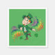 Napkin med en Illustration av en söt lycklig-leprechaun, han har en grönt kostym och en top hat och är omgiven av regnbåge av stänk A-perfekten för att fira Saint patrick's day, ritad av Radka2D