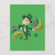 Vykort med en Illustration av en söt lycklig-leprechaun, som leprechaun i grönt kostym och top hat och som är omgiven av regnbåge i stänk i färgad A-perfekten för att fira Saint patrick's day, ritad av Radka2D