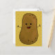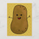 "Söt brun tecknad potatis med stort lycklig leende på ansikte.