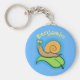 Cute, lycklig snigel på tecknaden löv nyckelring