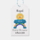 Cute lycklig sol molnregnbåge tecknad presentetikett