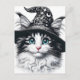 Cute Magic Cat in Wizard Hat Färg Stänk Vykort