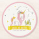 Cute Magic Unicorn Rosa Gult Barns födelsedag Underlägg Papper Rund