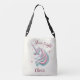 Den här charmerande personligen flickors väska har toppen av en söt pulverblått och rosa encorn med frasen "shine bright".