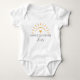 Cute och modern barn bodysuit med grafisk gul sol, hjärta och "mamas solsken" i modern font. Anpassa namnet till vad du behöver.