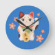 Cute Maneki Neko Lucky Cat Rund Klocka