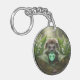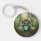 A cute hedgehog holding an emerald heart peeks out from a patch of lilies of the valley in a peaceful forest.