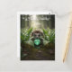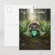 A cute hedgehog holding an emerald heart peeks out from a patch of lilies of the valley in a peaceful forest.