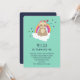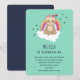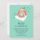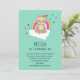 Födelsedagsfest inbjudan, med en söt tecknad som illustrerar en mediterande slav. Med en krona av blommor, sitta på ett vitt moln med en färgstark regnbåge bakom sig. Hjärta och stjärnor i bakgrunden.