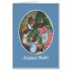 Ett julkort med hälsning i Fransk och en familj söt Wood Mice som dekorerar Julgran, med en handmålad vattenfärgsdesign av Judy Adamson.
