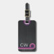 Modern monogram Retro-bagagemärke med rosa och lila rand på en svart bakgrund från metall struktur. Sans Serif-teckensnitt i vitt. Alternativet dubbla-sidig har en rosa bakgrund med vit text.