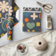 Cute Miscellany Scandinavian Mönster Blue Orange Mustard Grönt. Roligt, unik design med moderna övertoner i mitten av århundradet. Symboler för regnbåge, blommor, fisk och abstrakt. Av Kierkegaard Design Studio.