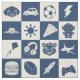 Cute Modern Blue Checkered Icons Seamless Mönster Tyg