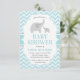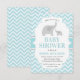 Cute Modern Blue Grått Elephant Baby Shower-inbjudan | Barnstödsinbjudan - Chevron Mönster