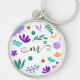 Cute Modern Flowers and Löv Rund Silverfärgad Nyckelring