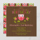 Cute Modern Uggla Födelsedagsfest inbjudan