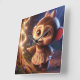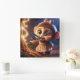 This image showcases an adorable baby monkey with large, expressive eyes. The monkey is wearing a pink dress with white polka dots and a matching pink bow on its head. It stands on a dirt path, reaching out towards a string of twinkling fairy lights draped on a tree trunk. The scene is set in a dimly lit forest, with soft lighting highlighting the monkey and the lights.