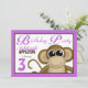 Cute Monkey Lila Födelsedagsfest inbjudan