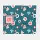 Söt blommigt med rosa blommor på tealbakgrund med modernt monogram.