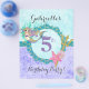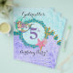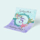 Sjöjungfru, snäckor, tridoner, skalor och stjärnfisk med Födelsedagsfest Age & Namn i Lila, Aqua & Teal med bubblor och accenter från Guld Glitter. En roligt med sjöjungfru och Personlig Text.