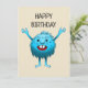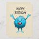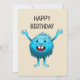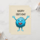 Det lilla blåa, söta monstret på ett födelsedagskort.