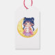 Add magical charm to your gifts and packaging with this adorable chibi moon girl sticker. Featuring a sweet girl in traditional attire sitting on a crescent moon while holding a fluffy bunny, this whimsical design is perfect for labels, stickers, party favors, and cute stationery.