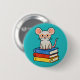Celebrate your love of reading with this adorable pin badge featuring a clever little mouse perched atop a colorful stack of books! With its charming orange glasses and sweet expression, this bookish mouse sits proudly on blue, red, and yellow books against a vibrant turquoise background.