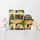 En söt brun mus dekorerar sin Julgran i sitt mysiga vardagsrum med en glad eld i eldstaden.