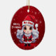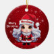 Mrs Santa Claus! Celebrate the holiday season with this festive round ceramic red ornament featuring an endearing woman cartoon graphic of a cute baby wearing a Santa hat, and Merry Christmas written in white. Perfect deer with antlers for decorating your tree or as a thoughtful gift, this whimsical doe decor makes a cherished keepsake for years to come. Customize by changing the text, the font, the font color, or remove the text. You can even transfer this design onto other products. Enjoy this design your way! Check out ForestBabies Xmas Deer Collection for matching decorations. 🎄🩌 Dimensions: Diameter: 2.87". Thickness: 0.156". Weight: 1.4 oz. Made of white porcelain. Full-color, full-bleed printing. Printing on both sides. Thread does not come attached/tied.