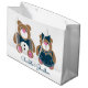 Cute och lustig nalle 45:e bröllop-årsdagen. Varje björn bär en blå safiffrutrustning och det finns utrymme för namnen av paret lycklig. Om du vill anpassa namnen och årsdagen som visas klickar du på Anpassa. Perfekt till make och fru som firar sin safir bröllop-årsdag. Det finns också ett matchande kort i den här designen.