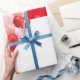 Backa dina gåvor eller skapa babyhantverk med denna nalle designad papper. Den här björnen i Valentines day håller hjärtformade ballonger och bär en röd poka-primatarslips. Det finns en röd, kontrasterande hjärtbakgrund och en hälsning som du kan köpa som med "Glad Alla hjärtans dag" eller lägga till din egen ord. Alla som får en helgdag som är inlindad med denna söta papper leker för den här tektbjörnen är så söt.