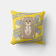 Anpassa den här kudden, kudden till ett barns kudde, med namn och början. Designad i gult, grått, brun, fyrkanter, rand, prickar, former och söt nalle. Polka dots på baksidan.