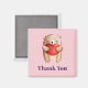 Ett tack till dig magnet med en söt illustration av vattenfärgen. En brun nalle med stort rött hjärta. Ljust gult polka dots på rosa.